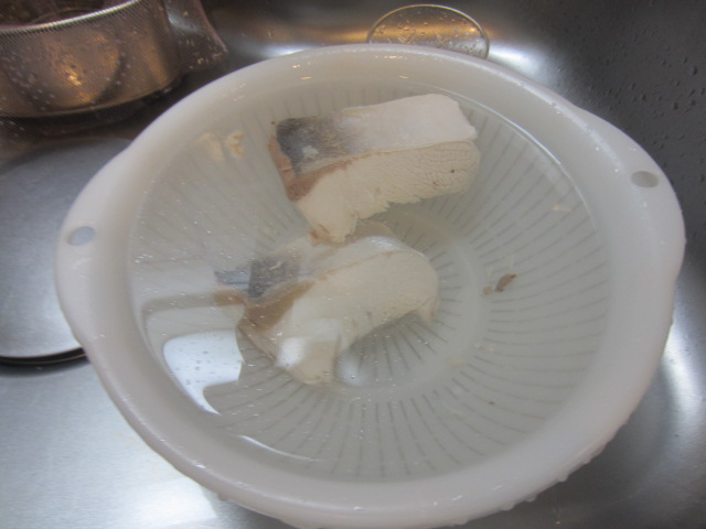 ブリの切り身をサッと茹でます