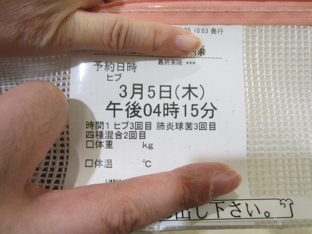 ヒブの3回目(ヒブはこれで終わり)