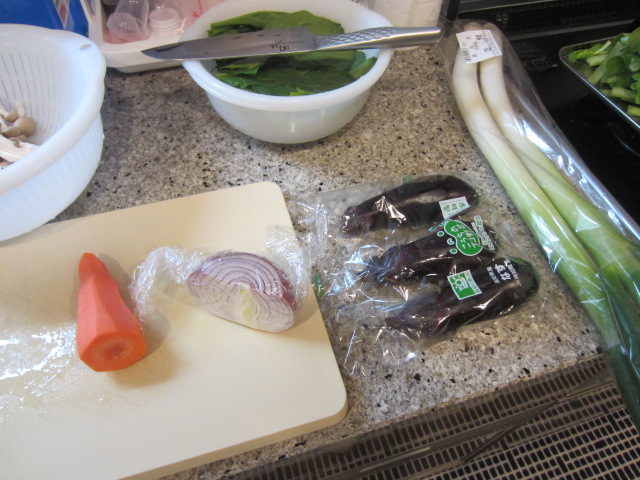 野菜炒めと蒸し野菜を作っている最中に